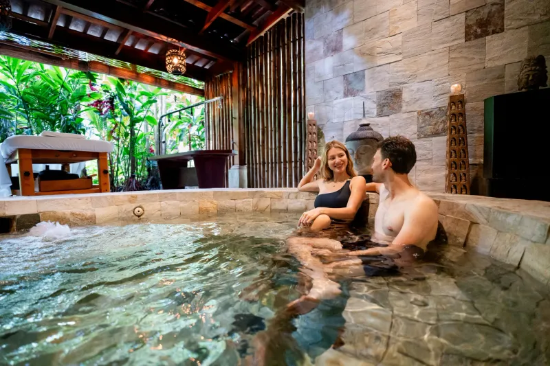 The Royal Corin Thermal Water Spa & Resort is a place where you come to relax and experience authentic nature while soaking in the warm geothermal pools and in our natural steam room. The steam room has been built over the natural hot springs. The temperature of the steam varies depending on the temperature of the weather, usually between 40°C (104°F) and 50°C (122°F). Humidity is very high in the steam room cabin. Grids in the floor of the steam rooms allow guests to hear and smell the boiling natural hot spring underneath, creating a totally unique natural experience.